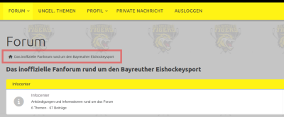 Wenn ihr eingeloggt seid und nur das Infocenter seht, dann klickt auf Das inoffizielle Fanforum rund um den Bayreuther Eishockeysport